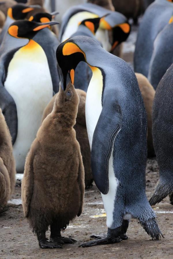 KING PENGUIN FEEDING YOUNG by SAMUEL G SHAW, USA